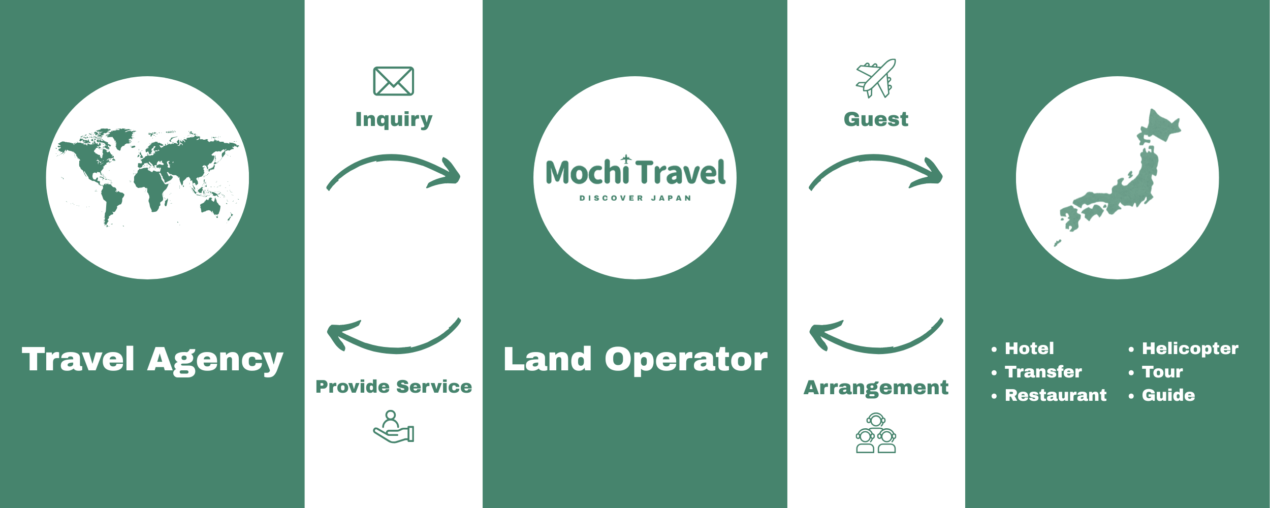 We are a Japan-based land operator specializing in tours, dining, and transportation for international visitors.